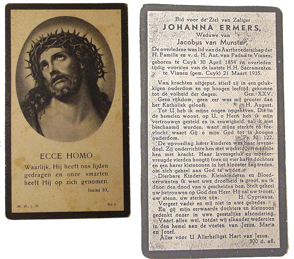1. Johanna Ermers Geboren 30 april 1854 te Cuyck & overleden op 31 maart 1935 te Cuyck Vianen. |